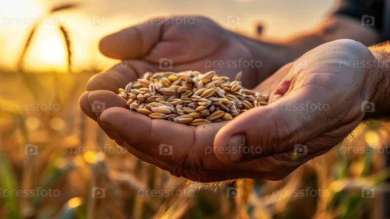 Преданный фермер держит пшеничные зерна, демонстрируя сущность сельского хозяйства и щедрость природы