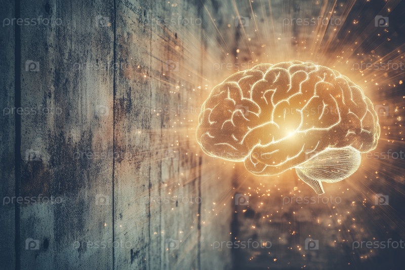 Захватывающая цифровая иллюстрация, демонстрирующая светящийся мозг, символизирующий мысль, творчество и инновации