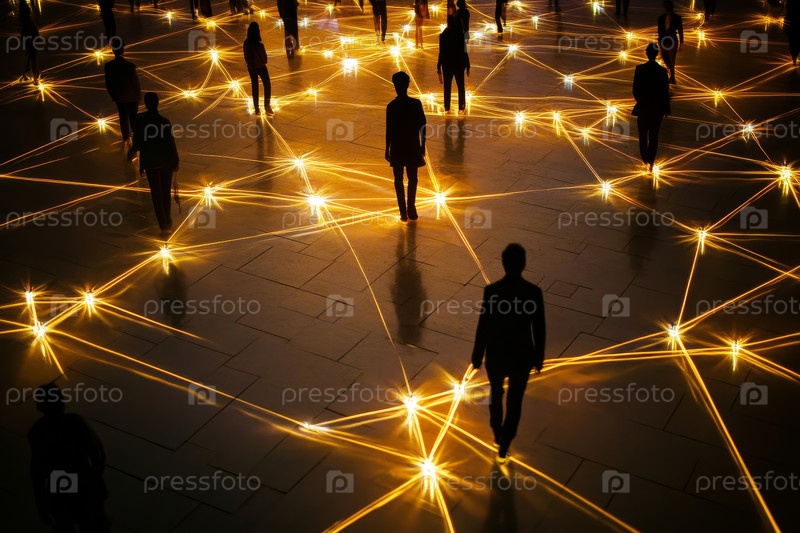 Визуальное представление, иллюстрирующее человеческие связи в цифровой сети, символизирующее современную коммуникацию