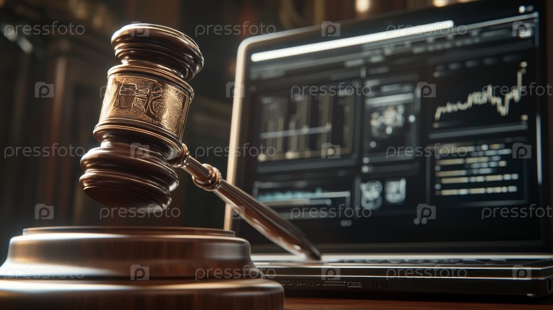 Символическое представление, демонстрирующее пересечение и слияние права и технологий в современной системе правосудия