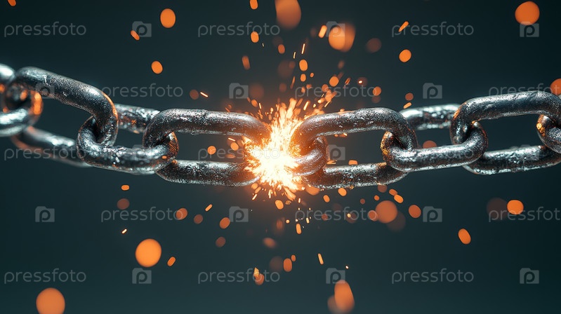 Разрывая цепи, мощная искра зажигает в сильном металлическом звене, символизируя свободу и трансформацию