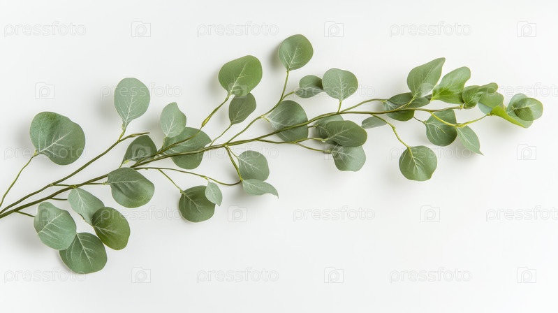 Элегантная ветвь эвкалипта со свежими зелеными листьями на фоне чистого белого фона для контраста