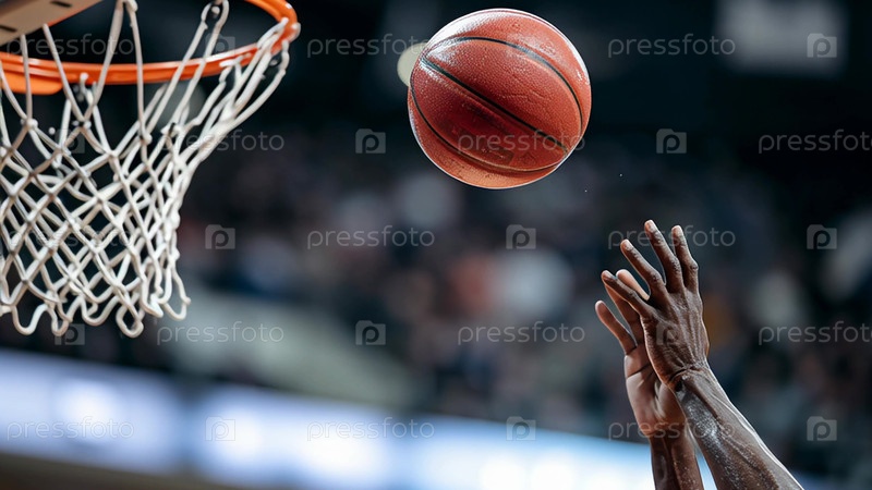 Динамическая сцена баскетбола и сообщества, Спортивный игрок, прыгающий высоко над городским открытым двором, Энергичный спортсмен стритбола, выполняющий мощный данк в открытой обстановке