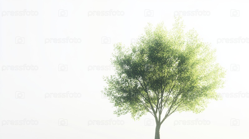 Красивое пышное зеленое дерево, изолированное на чистом белом фоне, идеально подходит для экологически чистых дизайнерских проектов