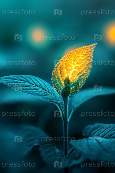 Прекрасно светящийся лист с замысловатыми деталями, излучающий нежное свечение в безмятежной сумеречной среде
