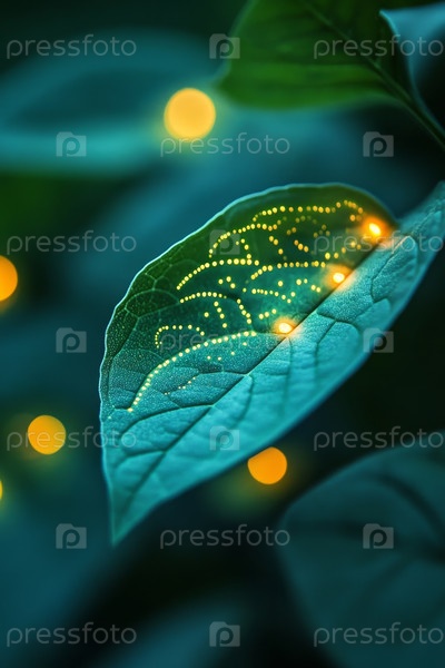 Волшебный и светящийся лист, найденный в мистическом лесу во время волшебного часа сумерек и сумерек