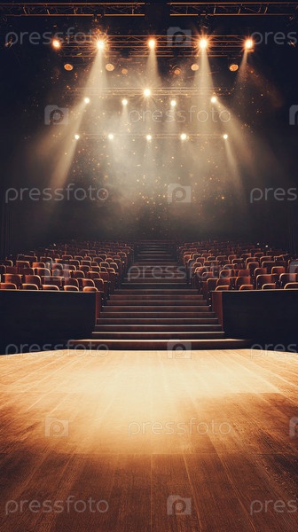 Захватывающая театральная сцена с очаровательным синим освещением и плюшевыми сидениями для захватывающего опыта