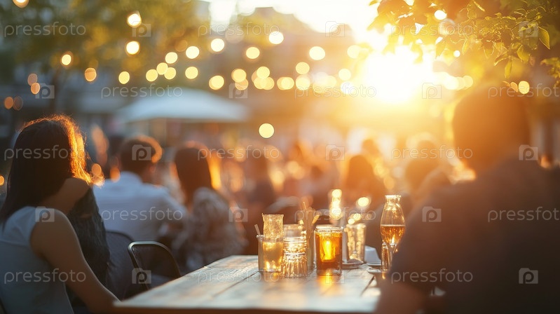 Насладитесь очаровательным ужином на открытом воздухе на закате, в окружении мерцающих огней и яркой атмосферы