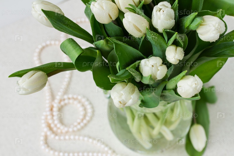Букет свежих белых тюльпанов