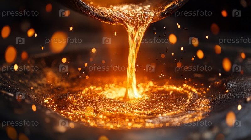 Жидкая сталь выливается из металлургического ковша, ай генерируется