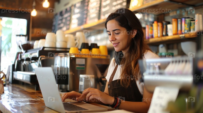 Специалист по кофе на работе, заботливая женщина, делающая кофе, преданная бариста, внимательно готовящая напитки, сосредоточенная женщина-бариста, усердно готовящая кофе в уютной обстановке
