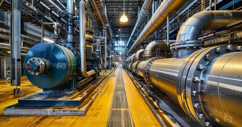 Четкое и всеобъемлющее представление о тщательно организованной промышленной трубопроводной системе в современной установке объекта