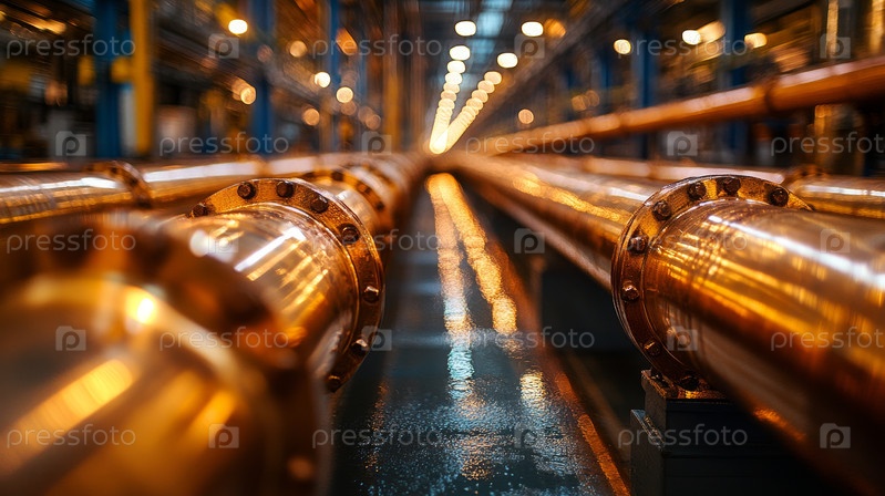 Стек блестящих медных труб демонстрирует их красиво отражающие поверхности вместе с замысловатыми конструкциями