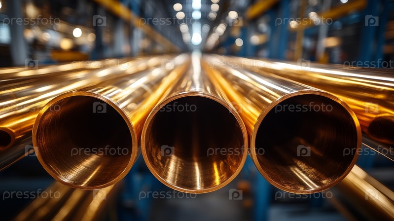Стек блестящих медных труб демонстрирует их красиво отражающие поверхности вместе с замысловатыми конструкциями