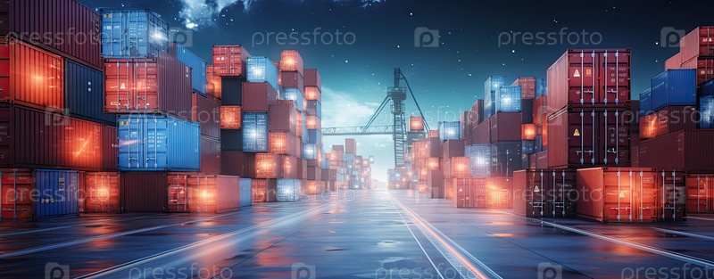 Грузовые контейнеры в логистическом хабе с виртуальной схемой