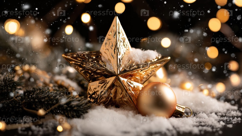 Рождественский фон с золотой звездой. Новогодний декор