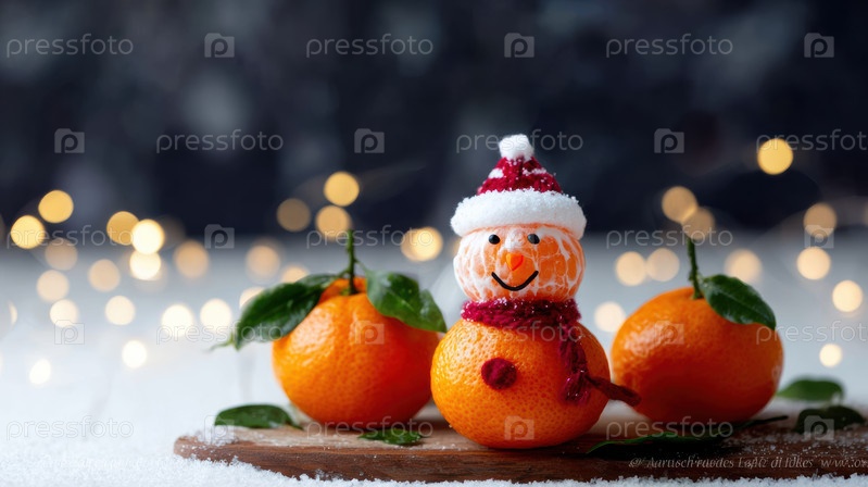Красочная зимняя аранжировка, подчеркивающая радостного снеговика с праздничным освещением, Живой зимний дисплей с счастливым мандарином, освещенным в теплом праздничном свечении