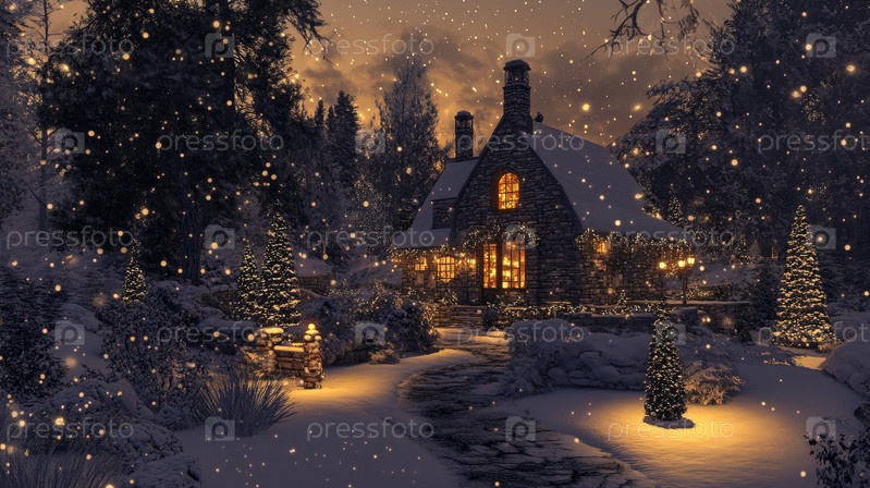 Очаровательная сцена зимней деревни с покрытым снегом Дома, построенные против серена, транквильных пейзажей