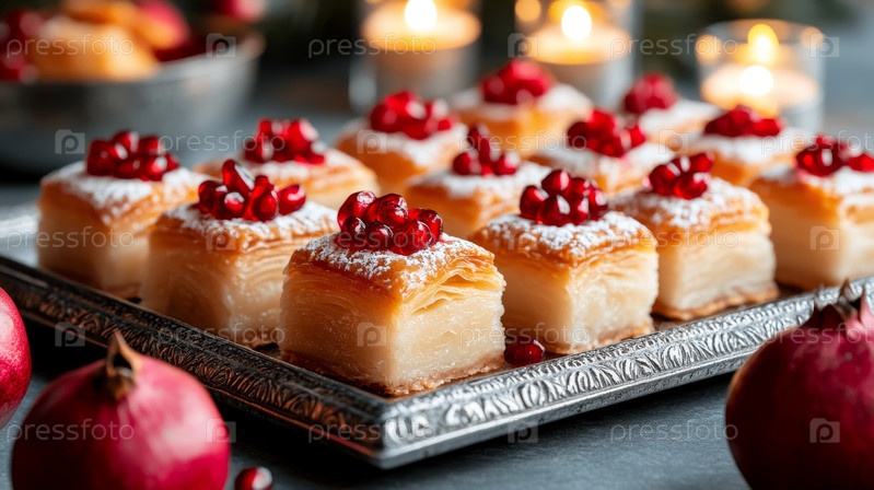 Праздничные наслаждения Прекрасный гранатовый десерт, идеально приготовленный для вас на серебряной дорожке