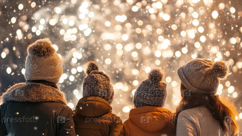 Радостная семья, радостно разделяющая тепло, смех и сердечные улыбки среди ослепительных праздничных огней