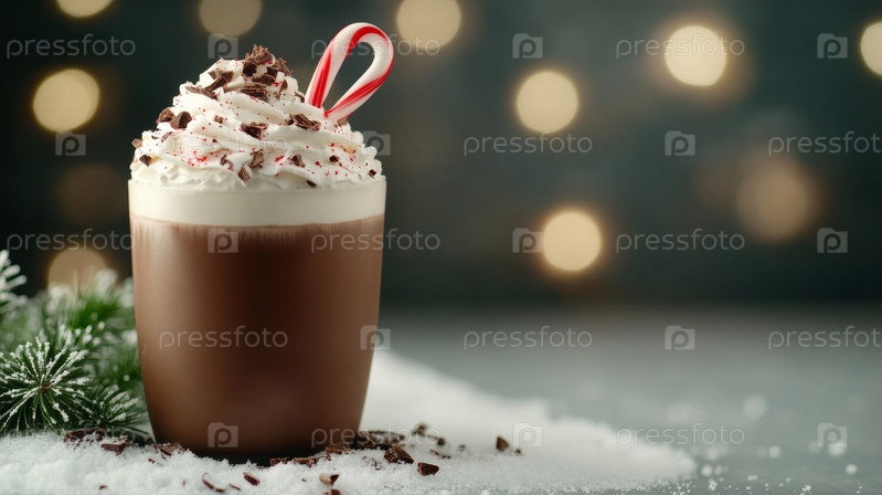 Побалуйте себя восхитительным праздничным напитком, увенчанным взбитыми сливками, красочными конфетами для зимних торжеств