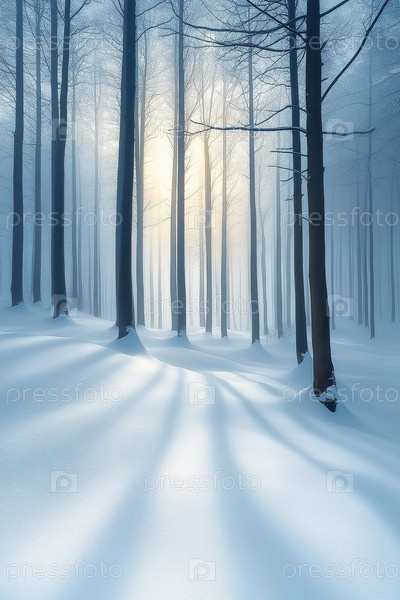 Мирная и спокойная зимняя сцена с красиво заснеженной тропой, извивающейся через высокие, заснеженные деревья