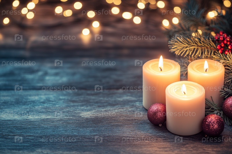 Испытайте безмятежную праздничную атмосферу, демонстрируя зажженные свечи, деревенские сосновые шишки и мягкие, светящиеся огни для тепла