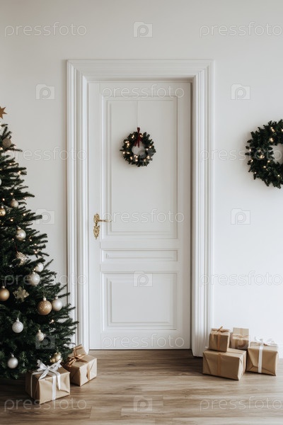 Дверь дома, украшенная на рождество