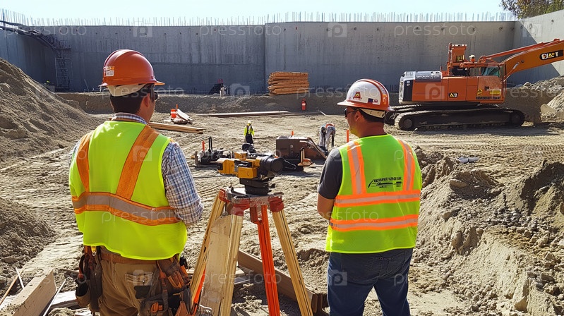 Строители, осуществляющие надзор за развитием городских фундаментов зданий и инфраструктуры