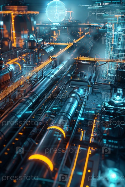 Современный химический завод технологический фон со стилизованной цифровой волной