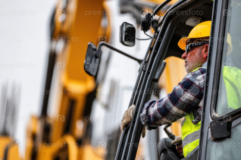 Строительный рабочий умело работает с тяжелыми машинами на рабочем месте