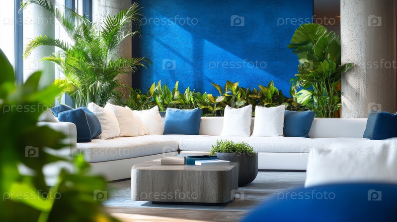 Роскошная современная гостиная с элегантным Dcor и роскошной зеленью