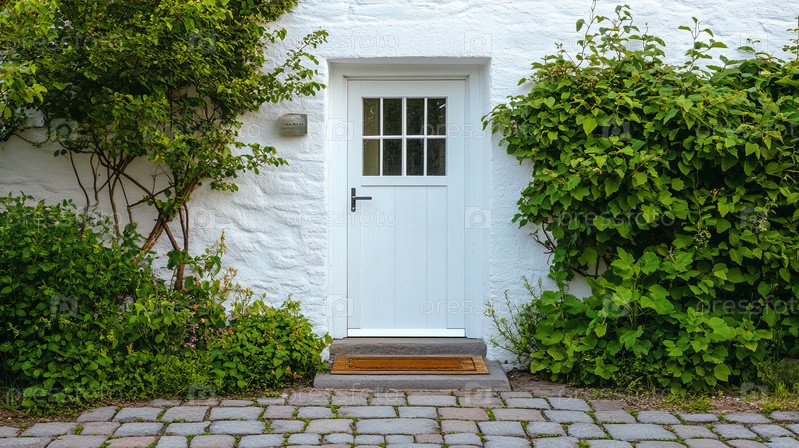 Шикарный домашний фасад, современный внешний вид с яркими растениями и художественными украшениями, стильный фасад резиденции, демонстрирующий живую зелень и элементы декоративного искусства