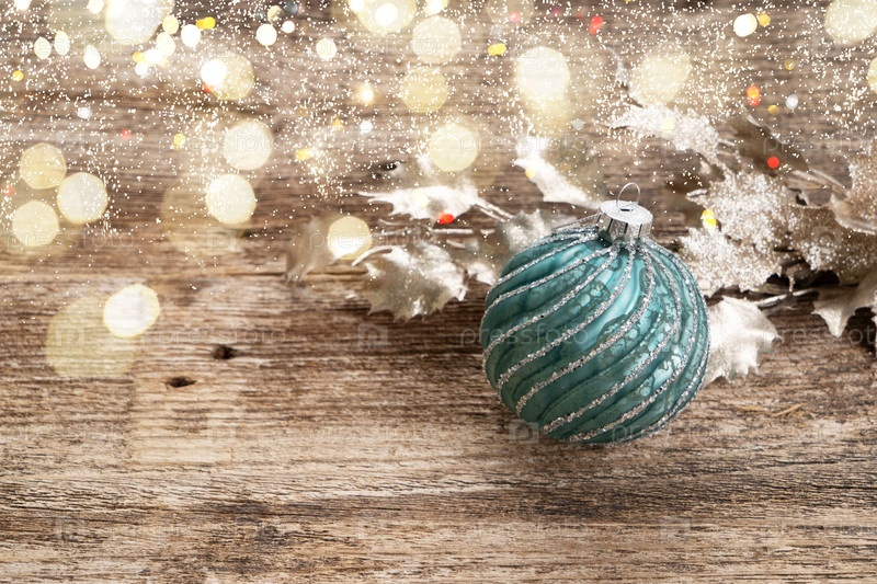 Рождественские украшения с золотистым листом холли на старом деревянном фоне