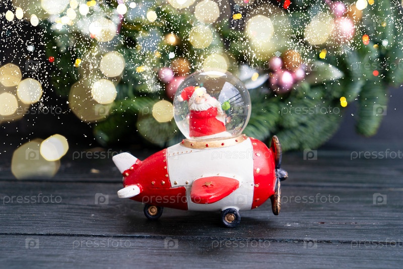 Рождественская доставка - самолет с рождественским деревом на темном праздничном фоне