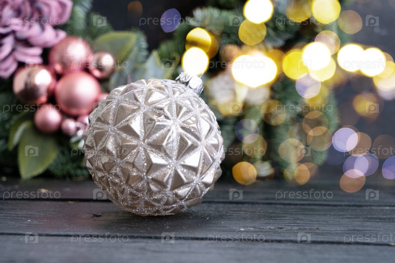 Рождественские серебряные и розовые украшения на темном фоне
