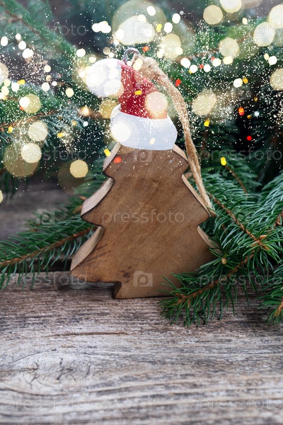 Рождественская сцена с рождественской елкой на деревенском деревянном фоне