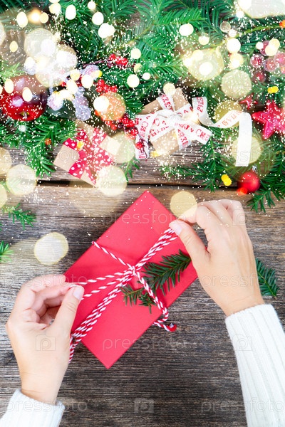 Рождественские подарки и концепция нулевых отходов - кто-то завернул рождественскую подарочную коробку