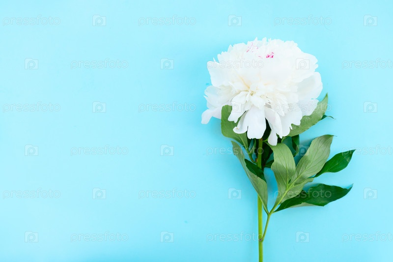 Один свежий цветок пиона на синем фоне с копировальным пространством