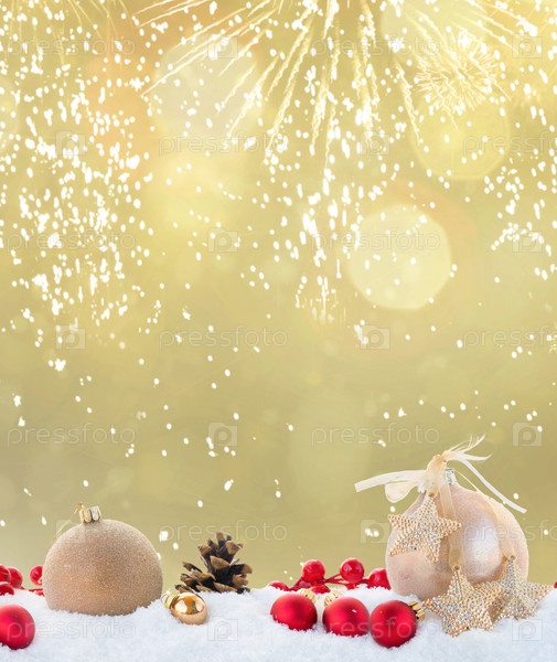 Рождественская граница с золотым и красным в снегу
