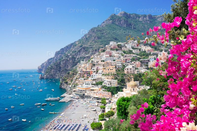 Вид на город Позитано летом - старый итальянский курорт, Италия