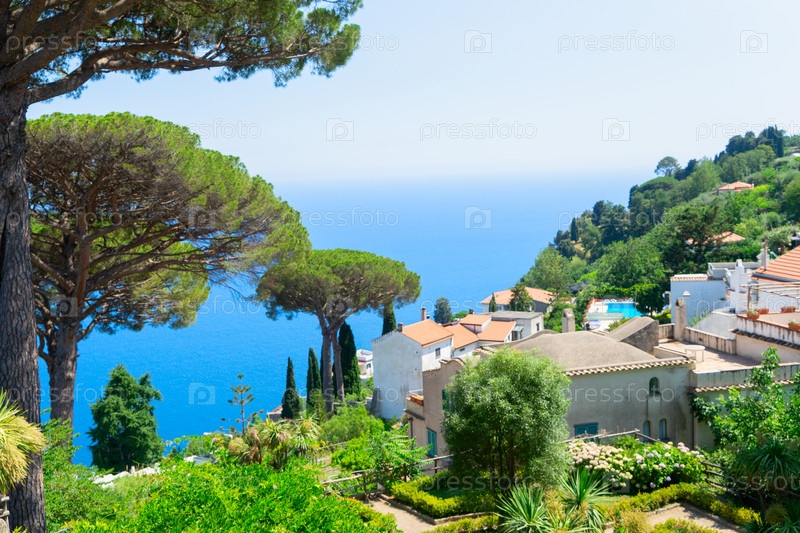 Вид на воды Тирренского моря и побережье Амальфи в Италии, ретро-тонированный