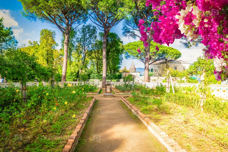 Фонтан в парке деревни Равелло, побережье Амальфи в Италии