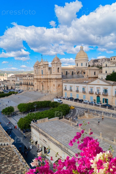 Старый средневековый город Ното с соборной церковью, Сицилия Италия