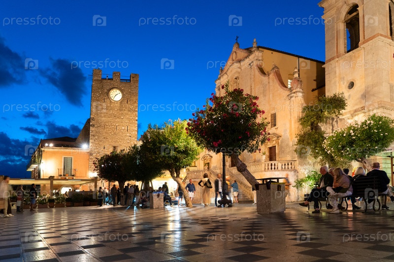Старая городская площадь Таормина в летний день, Италия