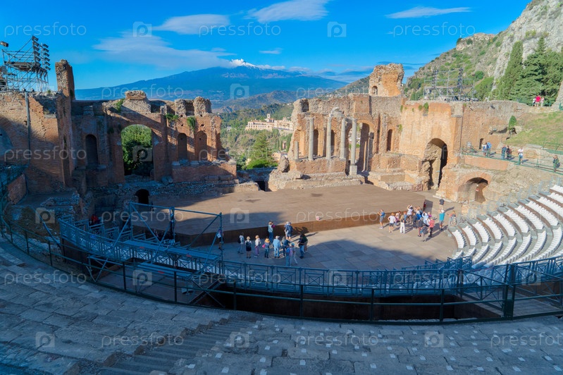 Таормина древний знаменитый амфитеатр, Сицилия Италия