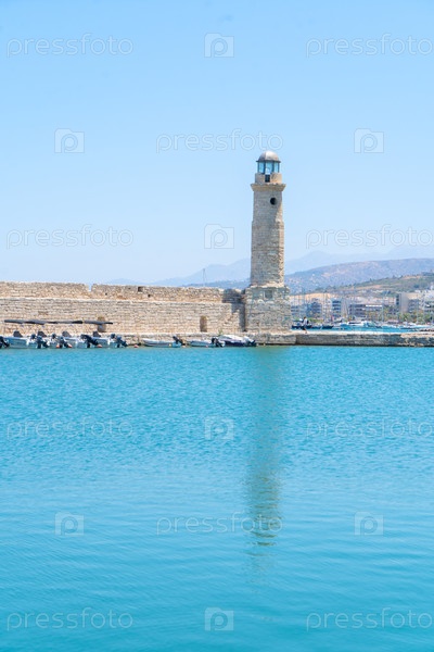 Гавань и маяк старого города Ретимно, Крит, Греция, Retro Toned