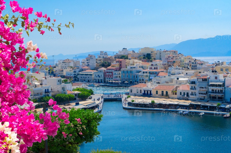 Озеро в ущельях Agios Nikolaos, Крит, Греция Retro Toned