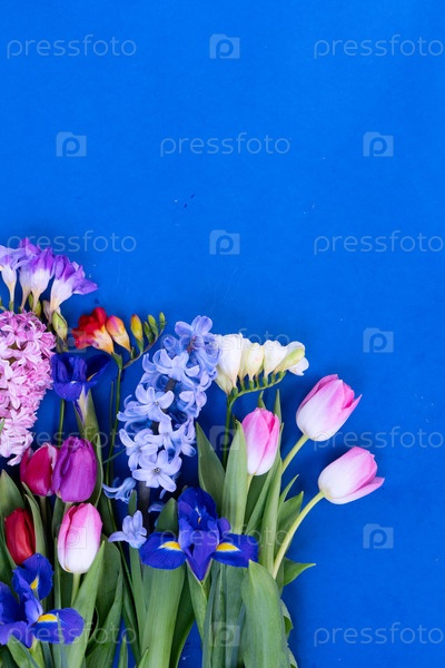 Цветущие нарциссы, цветы гиацинта и фризии