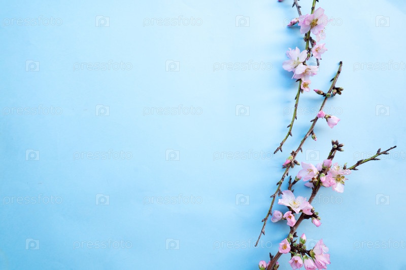 Весенняя вишня и миндальное дерево цветут цветами на синем фоне с копировальным пространством